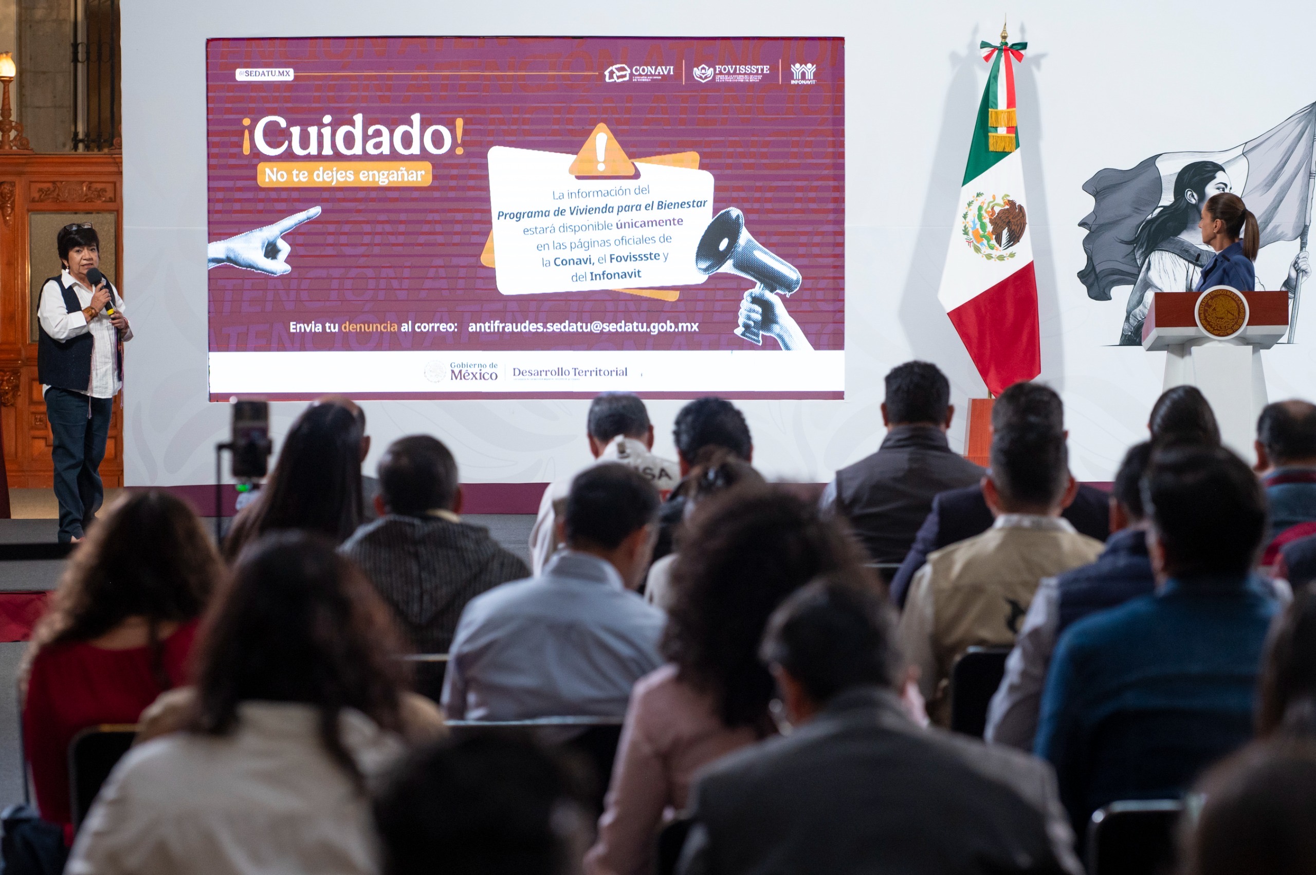 Ciudad de México, 6 de mayo de 2025.– La presidenta de México, Claudia Sheinbaum Pardo, encabezó este martes su conferencia matutina desde Palacio Nacional, donde presentó junto a su gabinete avances sustanciales en materia de vivienda. El encuentro abordó el diagnóstico y la estrategia para atender los rezagos del Infonavit, Sedatu y Fovissste, bajo un enfoque de justicia social y protección a las familias más vulnerables.
