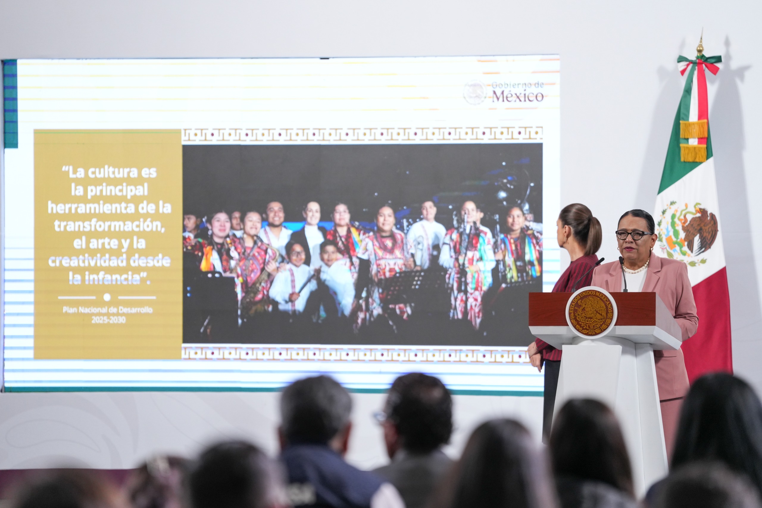 Desde la Secretaría de Gobernación, Rosa Icela Rodríguez destacó el impulso a la seguridad desde el arte y la cultura en siete entidades del país, atendiendo a más de 47 mil personas con actividades artísticas, educativas y comunitarias.