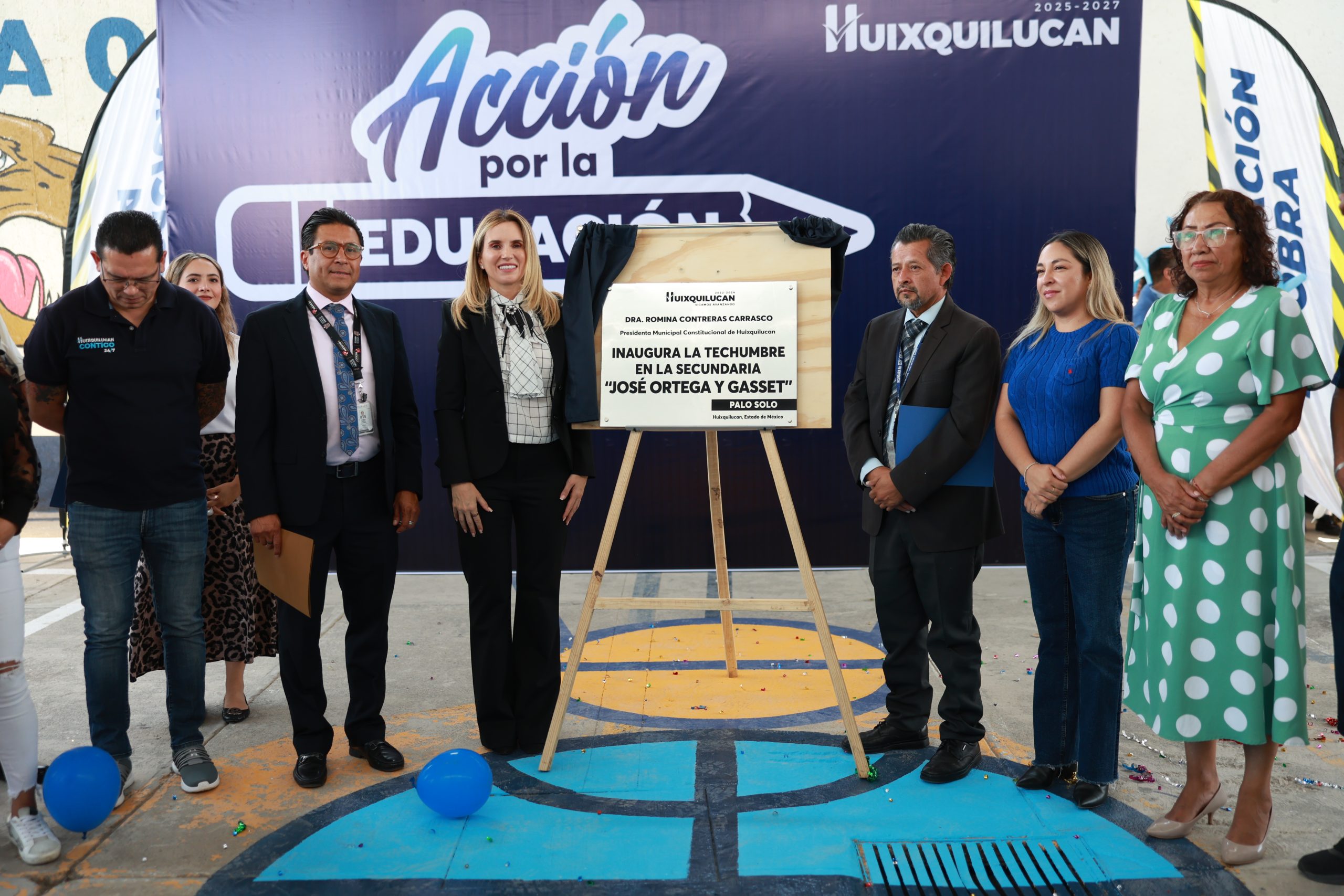 Con el objetivo de mejorar las condiciones de estudio para más de 220 alumnos, la presidenta municipal, Romina Contreras Carrasco, inauguró una nueva techumbre en el patio de la Secundaria Oficial 379 «José Ortega y Gasset», en la colonia Palo Solo. La obra, con una inversión superior a los 1.9 millones de pesos, permitirá a los jóvenes realizar actividades físicas y recreativas protegidos de las inclemencias del tiempo.