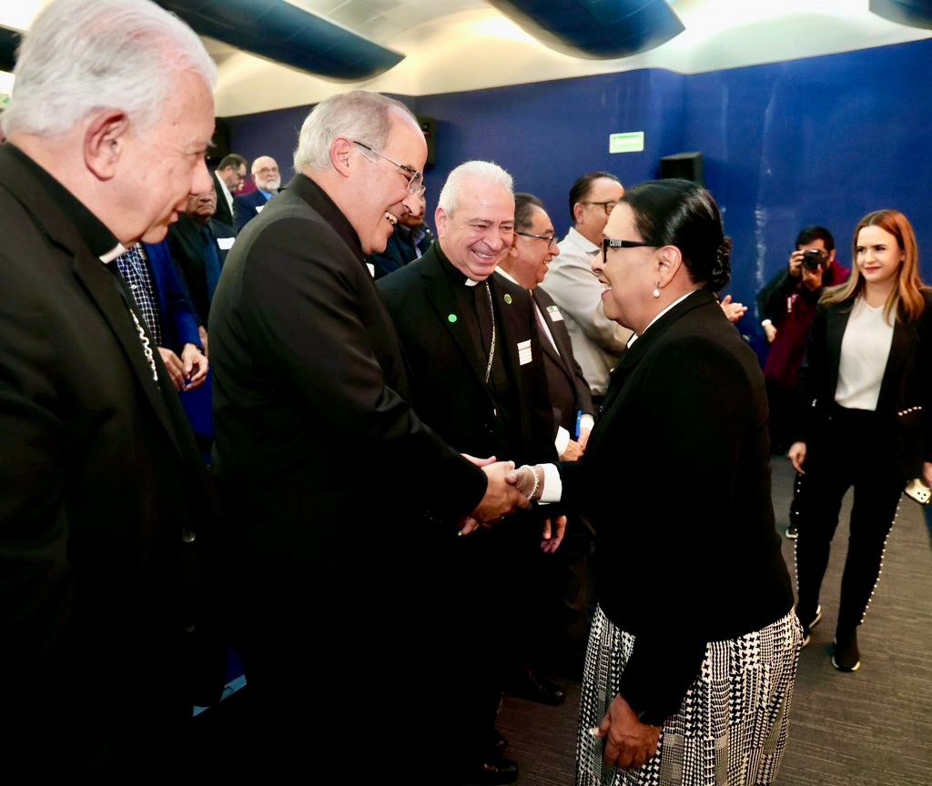El presidente de la Conferencia del Episcopado Mexicano, Ramón Castro; el secretario general y el tesorero general de la Conferencia, Héctor Mario Pérez, y Jorge Alberto Cavazos, respectivamente. Además del presidente del Concilio Latinoamericano en México, pastor Cirilo Cruz; el presidente de la Iglesia de Jesucristo de los Santos de los Últimos Días, pastor Elder Sean Douglas; el presidente de la Iglesia Adventista del Séptimo Día, pastor Ignacio Navarro; y representante de la Convención Nacional Bautista de México, pastor David Hernández; y la obispa de la Iglesia Anglicana de México, Alba Sally Sue Hernández, entre otros dirigentes.