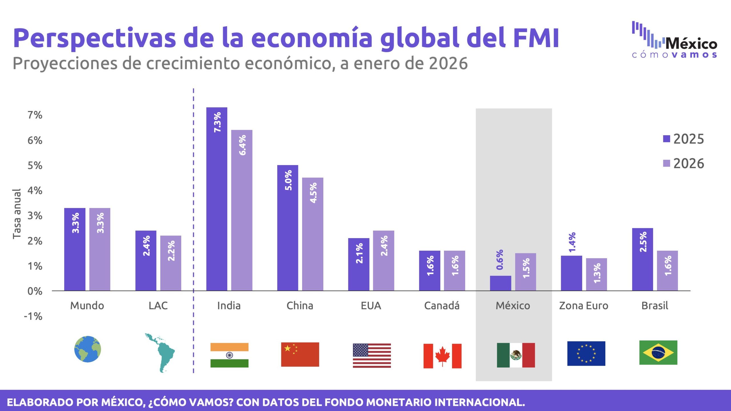 Fotografía: Para 2027, el Fondo anticipa una aceleración al 2.1%, impulsada por una política monetaria menos restrictiva y la inercia de Estados Unidos. Crédito de la imagen a "México cómo vamos"